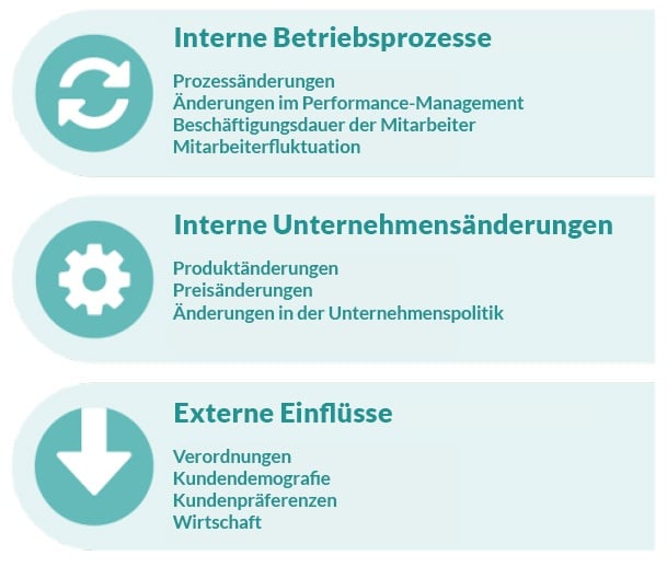 Mindestens genauso wichtig sind interne und externe Einflussfaktoren, die sich auf das Kontaktvolumen und die Produktivität im Contact Center auswirken.