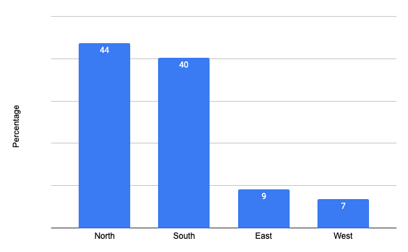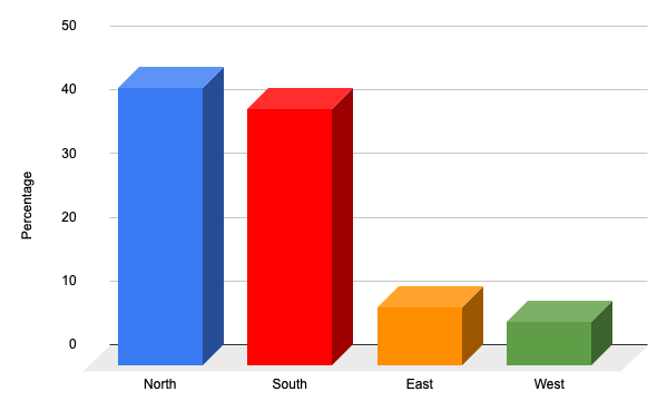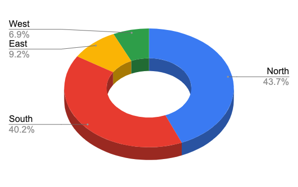 Hay situaciones en las que un gráfico circular o de dónut es apropiado, si quieres por ejemplo destacar las similitudes. En nuestro caso sería que el norte y el sur tienen el mismo valor, entonces un gráfico circular tiene sentido. Si se quiere poner de manifiesto incluso pequeñas diferencias, es preferible un gráfico de barras.