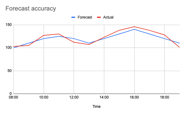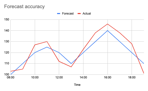 En el primer gráfico parece que la previsión fue bastante acertada. Hay algunas discrepancias, pero el resultado global parece positivo. El segundo gráfico revela grandes desviaciones. De hecho, los mismos datos se presentan en ambos gráficos. Un planificador sin escrúpulos podría elegir el primer gráfico para convencer a la dirección de que el rendimiento de las previsiones es bueno, lo que está muy lejos de la realidad. Por otro lado, el segundo podría usarse para revelar la debilidad de las previsiones y argumentar a favor de un nuevo enfoque de previsión.